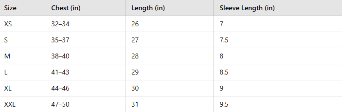 | Size | Chest (inches) | Shirt Length (inches) | Fits Like |